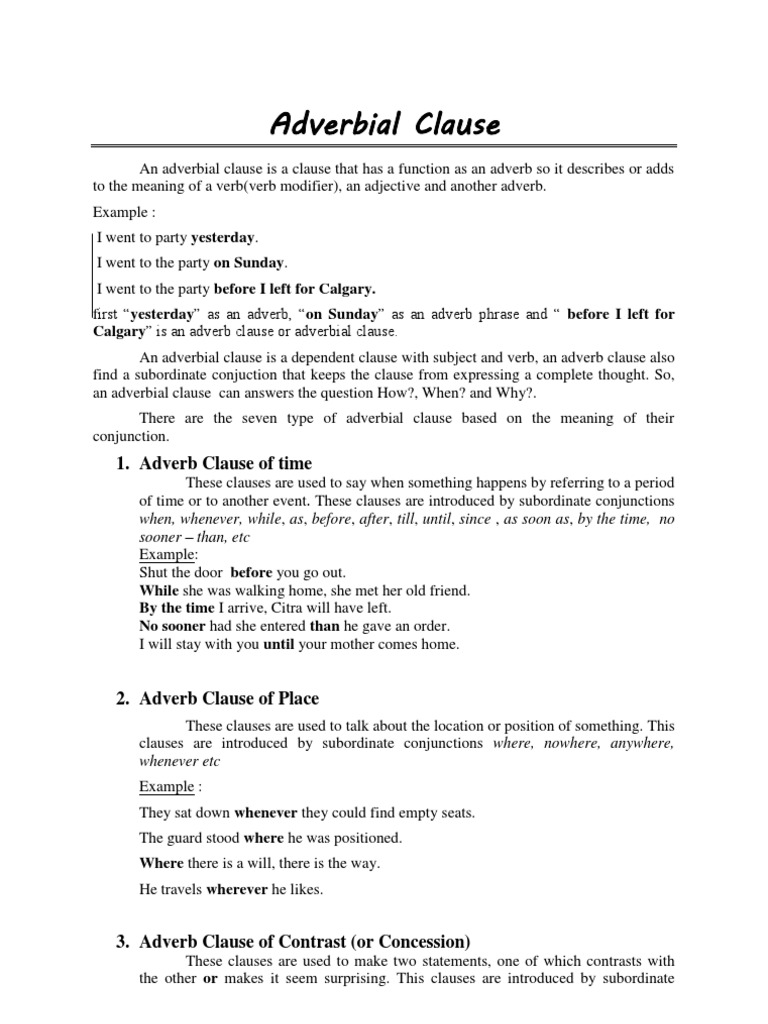 12 Free Adverb Clauses Worksheets from busyteacher.org Check spelling or type a new query. Adverbial clause of place examples. Maybe you would like to learn more about one of these? We did not find results for: